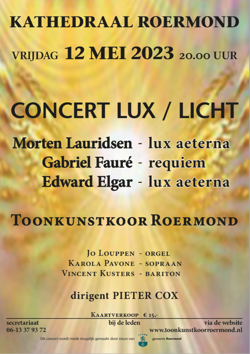 Het voorjaarsconcert stelt het thema LICHT centraal in werken van drie verschillende componisten, die ieder op een eigen manier dit thema hebben verklankt.